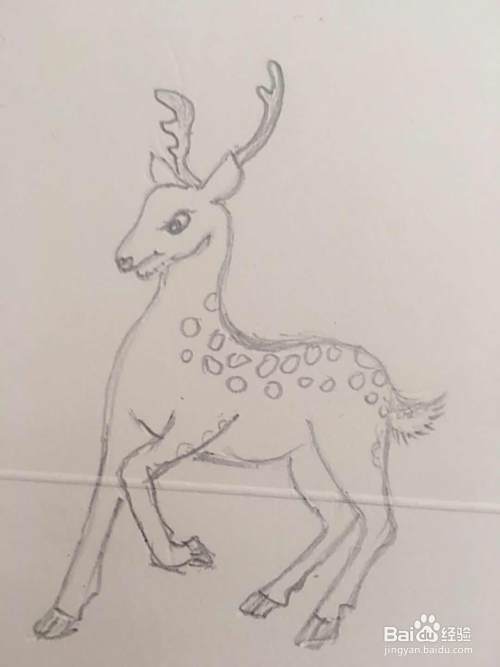 第六步 再添上梅花鹿的尾巴 和身子上的梅花斑点 再修改一下就行了