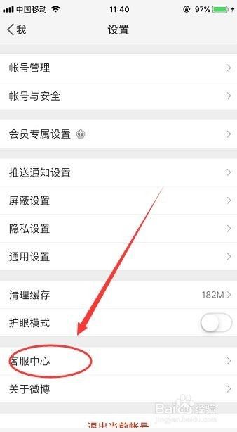 然后打开设置页面,再点开页面下方的 客服中心,如下图