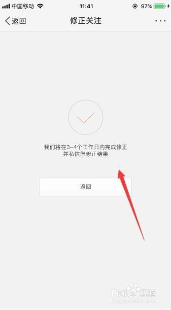 然后系统就会自动发送等待处理,3-4个工作日就会修正并私信告知修正结果,如下图
