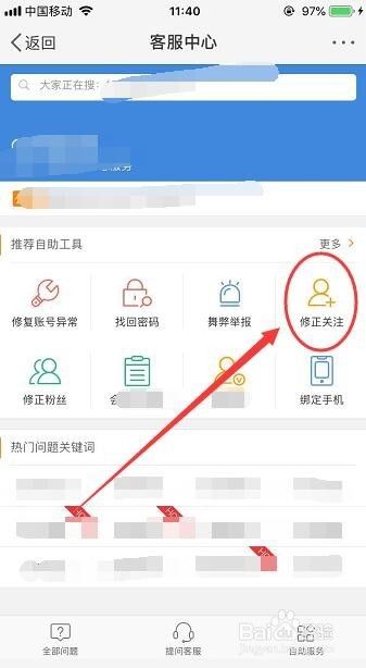 打开客户中心页面之后,在页面右边中间有个 修正关注,如下图