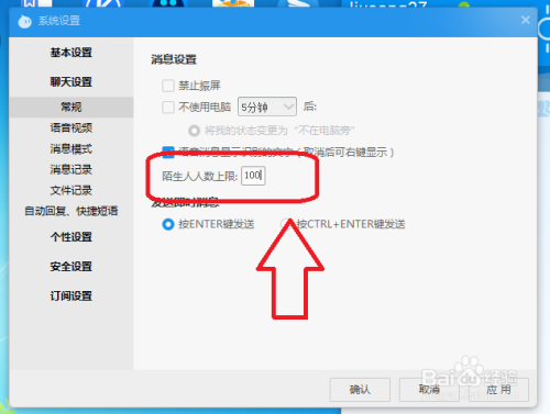 4、在“陌生人人数上限”后面输入需要设置的人数上限。