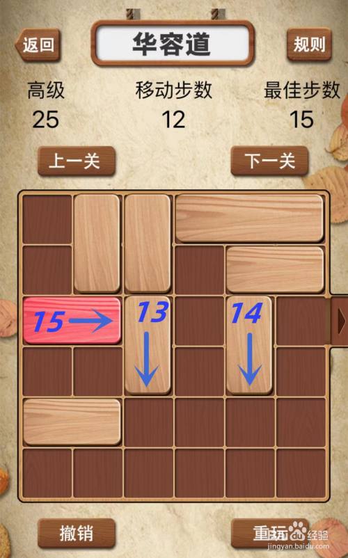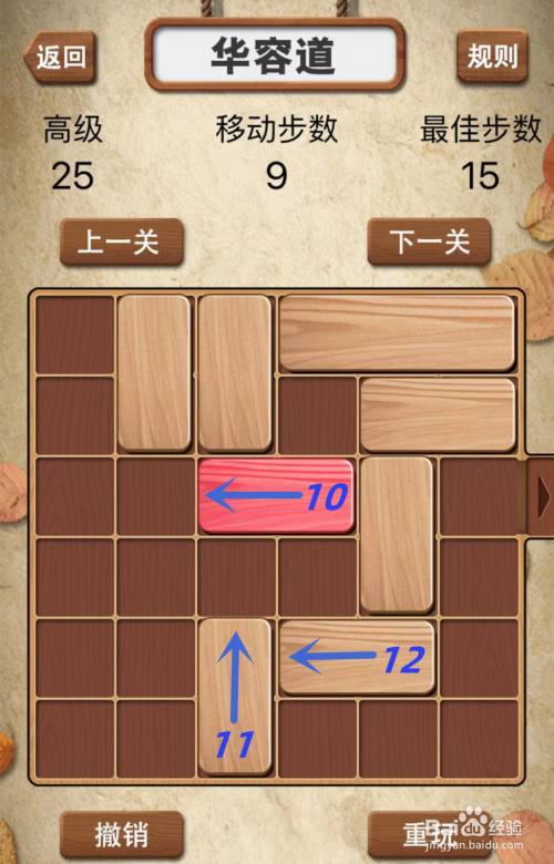 华容道游戏中,高级模式第25关的最佳步数为十五步,难度较高,下面来分享怎么在最佳步数内通过此关。
