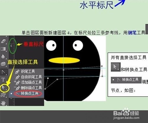 转换点工具:用于改变路径的圆滑弧度,如之前的实例徒手画出QQ图中的围巾。如图: