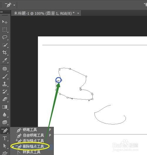 删除锚点工具:用于删除即减少路径上的节点,方便调整路径圆滑度,如图: