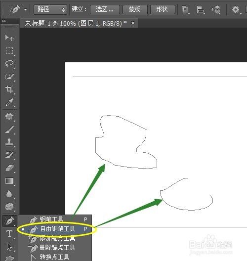 自由钢笔工具,快捷键P:可以自由手控鼠标画出不规则创建开放或闭合的路径。如图: