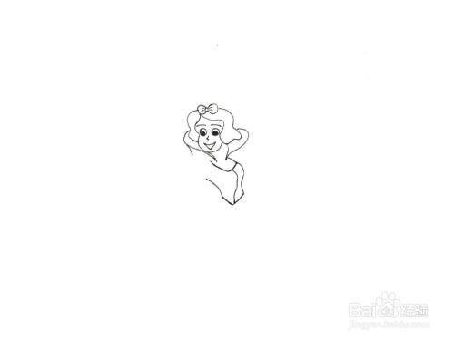 首先画出公主的头发、五官和上半身线条,如图所示: