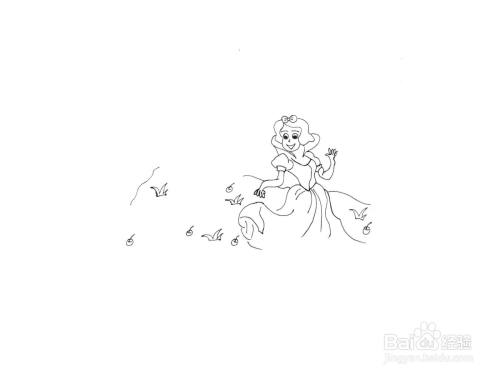 接着把公主的胳膊和长裙子画出来,如图所示: