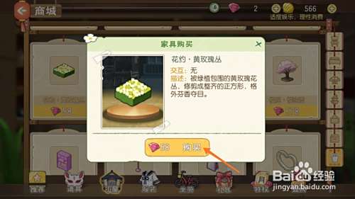 接着点击右侧的最后一个图标,选择列表中的花约-黄玫瑰丛,支付58钻石即可取得花约-黄玫瑰丛。