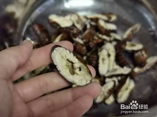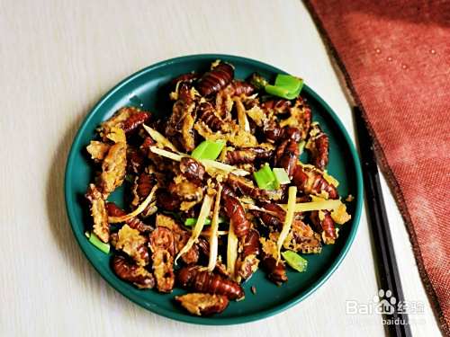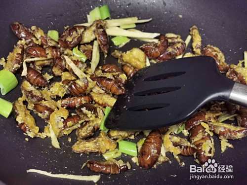 首先将蝉蛹洗净焯水,熟后一切两半儿取出中间黑色部分。