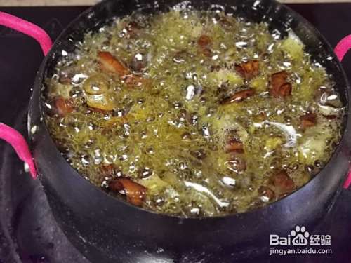起锅烧油,全程小火,将蝉蛹一个个放入。
