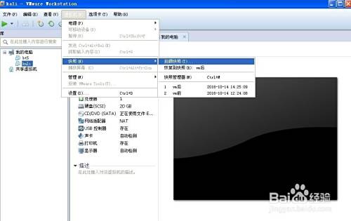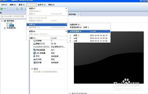 点击虚拟机-快照--快照管理,来管理我们的快照,如下图。