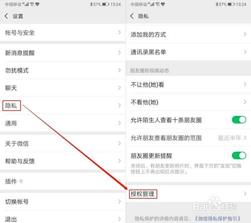 在“设置”页面,点击【隐私】,再点击【授权管理】,打开“授权管理”页面。