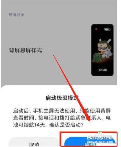 再在息屏显示下面,用户们就能看到【极限模式】,点击右侧开关按钮。
