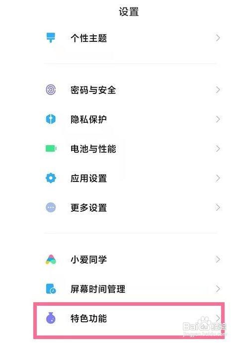 首先在桌面打开手机【设置】进入,找到【特色功能】