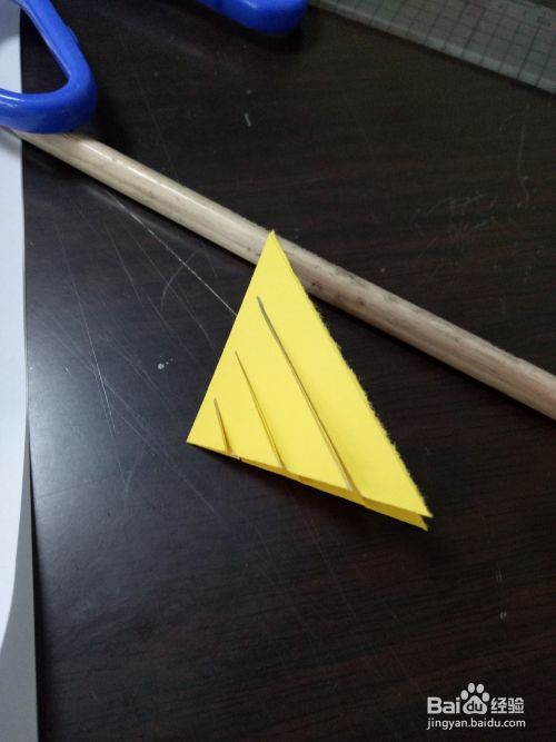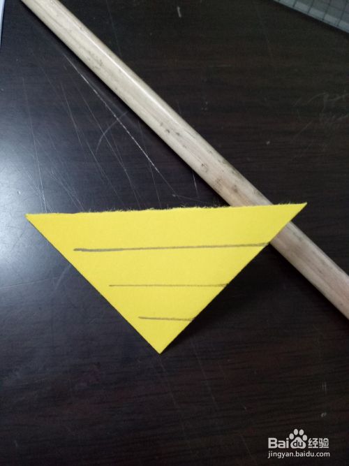 用尺子从最大的那个边开始,画宽度为一厘米左右的线,对折的那个边不画出头,留0.5厘米左右