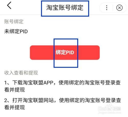 点击绑定淘宝或者京东的PID,为了正常的返现获益,需要下载【淘宝联盟】,将来才能查看收益。
