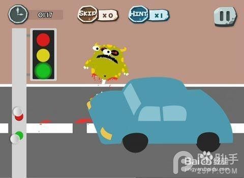 经过100种蠢蠢的死法第二关后,100种蠢蠢的死法第三关比较简单,把设备(手机或平板)音量调到最大,绿食怪就会被汽车撞了。震耳欲聋不是最可怕的,间接杀死男猪脚才是最奇葩的!