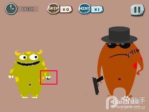 经过100种蠢蠢的死法第一关后,100种蠢蠢的死法第二关需要大幅度的摇动设备(手机或者平板),要使劲哦,千万抓紧了手机,不要把手机给丢出去了,让房子倒塌下来,绿食怪就会被压死了。