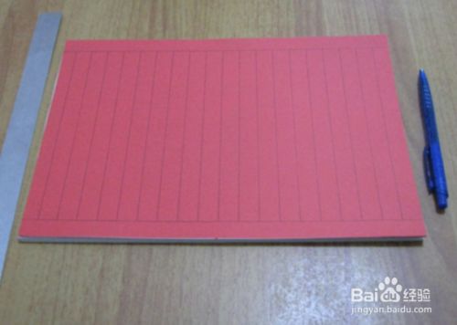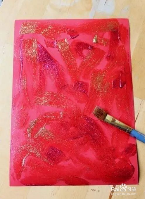 方法二:步骤教程:准备一张大小合适的红色长方形卡纸,用小刷子在纸上刷一些散光金粉,把长方形卡纸纵向对折,从卡纸对折中线处纵向画一些辅助线条,用剪刀裁剪,不要把纸条全剪开。