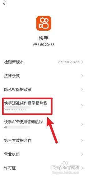 即可查看快手短视频作品举报热线