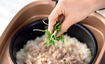 指示灯转到保温档后,迅速将洗净的豆苗投入