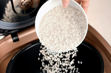 大米洗净,浸泡30分钟,放入电饭煲,按下煮饭键