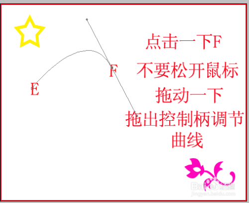 画曲线:先在起点点击一下比如E点,点下一个目标点比如F,点完F不要松开鼠标把鼠标拖拉一下就可以看到线随着鼠标拖拽变化,还想增加曲线照着前面步骤做即可。