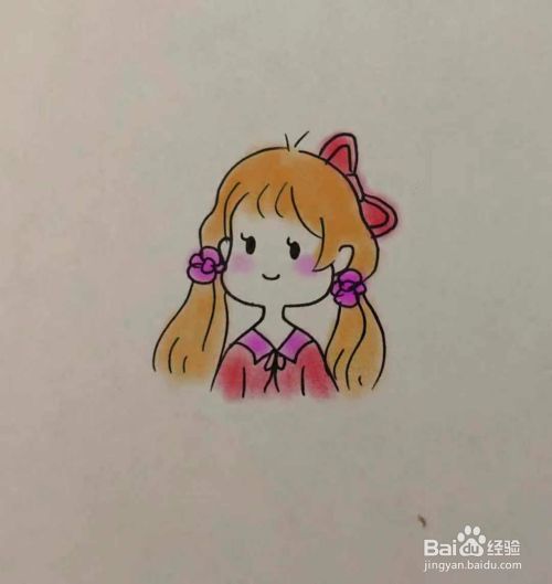 最后涂上颜色,一个简单又可爱的小姐姐就画好了。