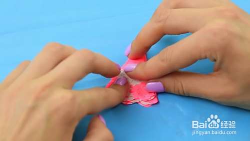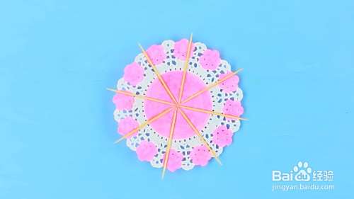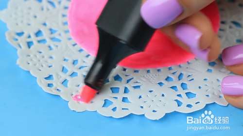 然后用粉色的马克笔给蕾丝纸巾涂上颜色。