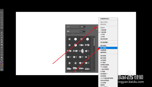 鼠标右击一下工作区域,驼争点击锯齿状按钮,然后点击载入画笔功能。