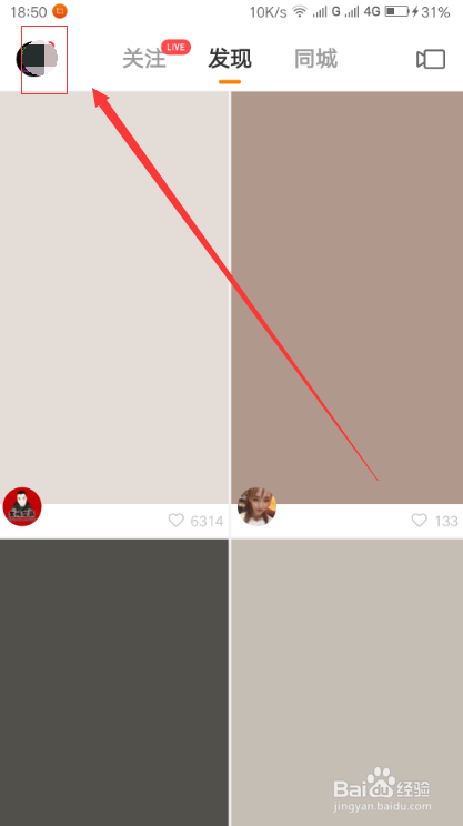 进入到快手的主页面之后,我们找到左上角自己的头像并点击。