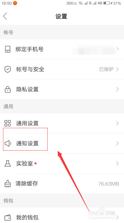 在设置页面,我们可以找到下面的“通知设置”的按钮,并点击打开。