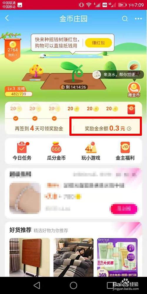 在“金币庄园”里每签到一天获得20个金币,一个周期点开一个现金红包,收集满5元后即可兑换现金红包。我们从奖励金余额的链接即可进入兑换红包的页面,查看兑换好的红包,需要购买时即可点击使用。