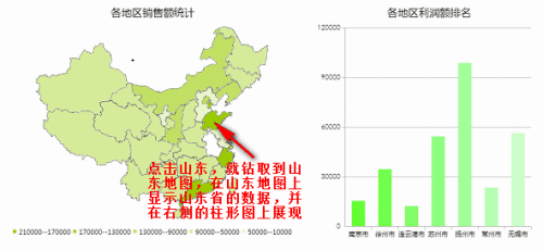 下面通过报表控件FineReport来介绍一下地图的钻取与联动。