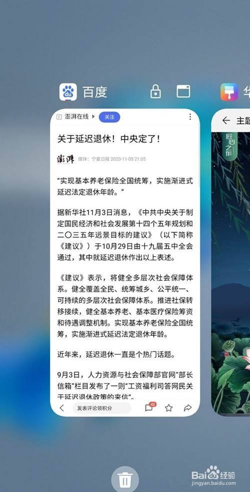 2、将想要清除的程序向上滑动即可,或者点击下方的垃圾桶图标可清除所有程序。
