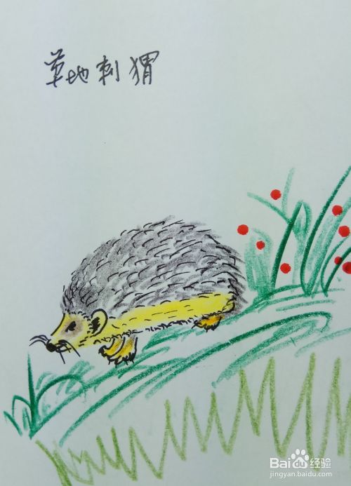 用水彩笔涂出刺猬的肚皮部分和背部的色彩,然后再画出地面上的草。
