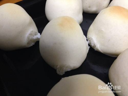 出炉看看,是不是觉得光滑能能的远胖子好可爱 . 他是表面看起来酥酥干干的 实际上里面软软的 拉开后组织有拉丝呢 .