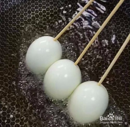 锅里加入油烧至五六成热,把鸡蛋 下入锅中炸,炸到起虎皮就捞出来控油。