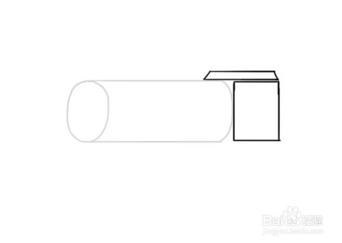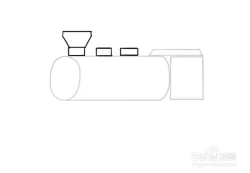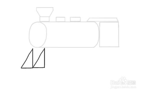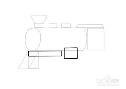 在圆柱的右端画一个长方形,上面画一个小梯形,作为驾驶室。