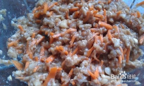 肉末里加入了红萝卜,再放入适量的盐,糖,生抽调味腌制10分钟。