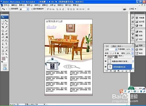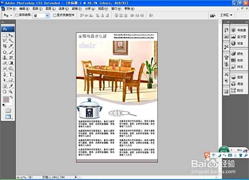 合并图层,调整图片的大小,再次选择横排文字工具,输入字体,这样说明单页就快速设计好了哦。
