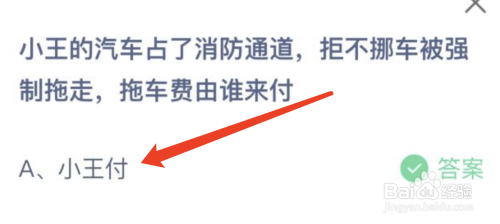 小王的汽车占了消防通道拒不挪车,蚂蚁庄园答案