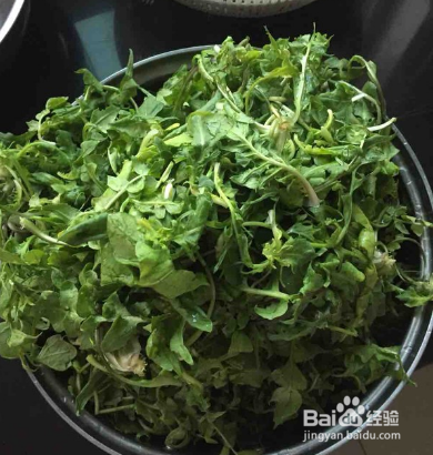 2、将洗好的野菜清洗干净,切碎(备用)葱剁碎切好备用
