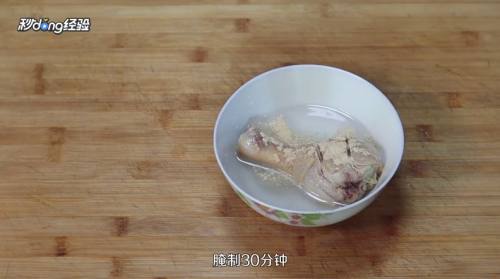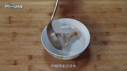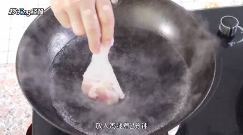 1将水烧开,放入鸡腿煮2分钟,加干姜。