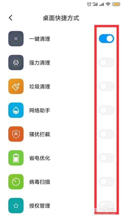 接着点击开启需要添加到桌面的快捷方式的开关 ;