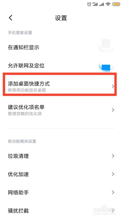 进入设置界面后,再点击添加桌面快捷方式 ;