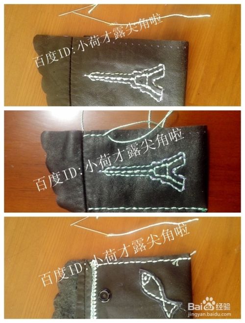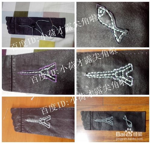 缝图案时是两根针穿一根线同时对着缝,。这是缝好的铁塔和小鱼的样子,图案要先缝上去,然后再合起来,