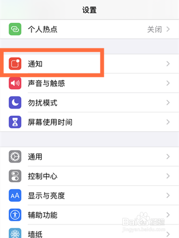 在设置模块中,找到并点击“通知”,如下图所示。
