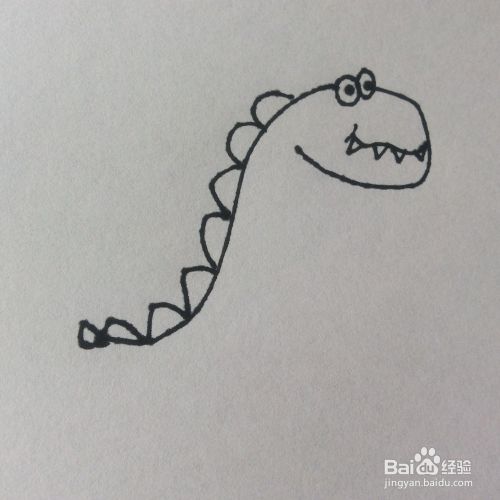六。在恐龙身体上画出恐龙的手臂和脚。恐龙的儿童画就完成了。