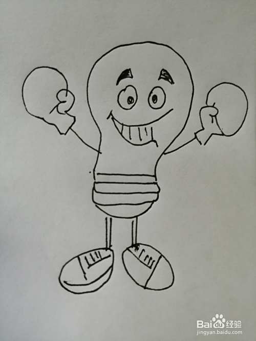 第七步,最后把可爱的灯泡的两条腿画完整。可爱的灯泡就画好了。